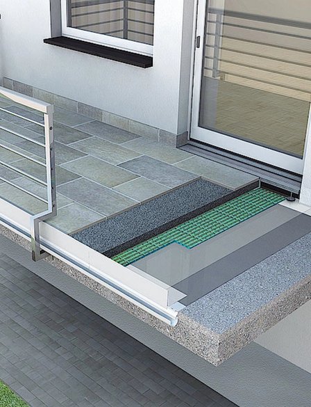 Der Einbau von Drainagesysteme unter den Belägen bietet eine sichere und langfristige Lösung für Balkone, Terrassen und Außentreppen.